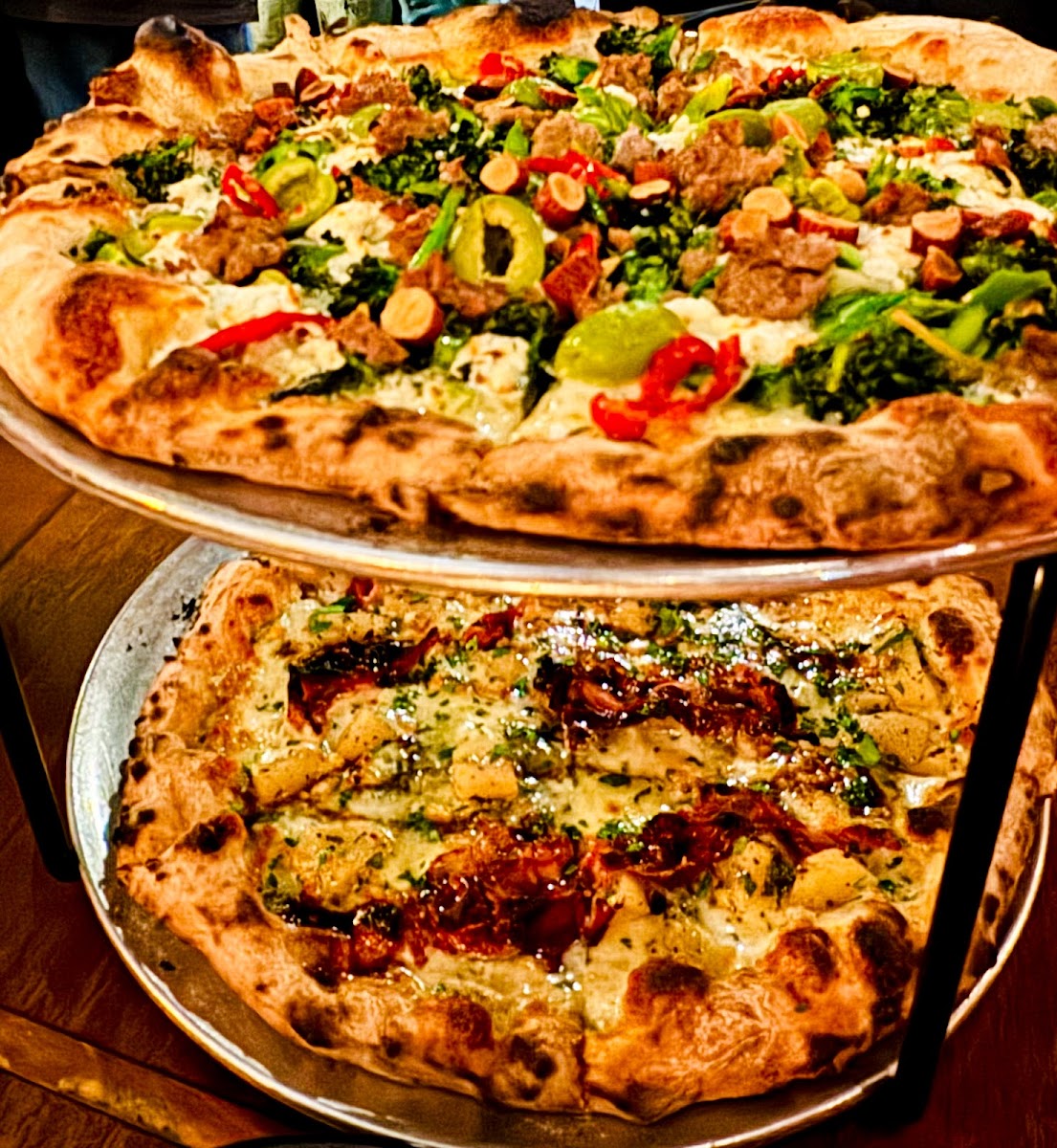 Sorry this place is closing! Great bar, beautiful atmosphere, excellent food. Table service was a bit slow for drinks. Food and drinks are creative, flavorful, and pleasingly presented. We sampled the gem salad, mussels (incredible), prawns, burrata (wow), and of course, pizzas (Basque, Cacio e pepe). Dessert sampler is also not to be missed! But you only have until the fall to check out this gem. Photos unabashedly stolen from my friend Scott.